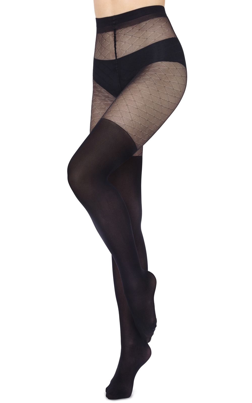 60 den läbipaistmatud sukkpüksid üle põlve efektiga võrksukkpüksid, koos nähtamatult tugevdatud varbaosaga.
