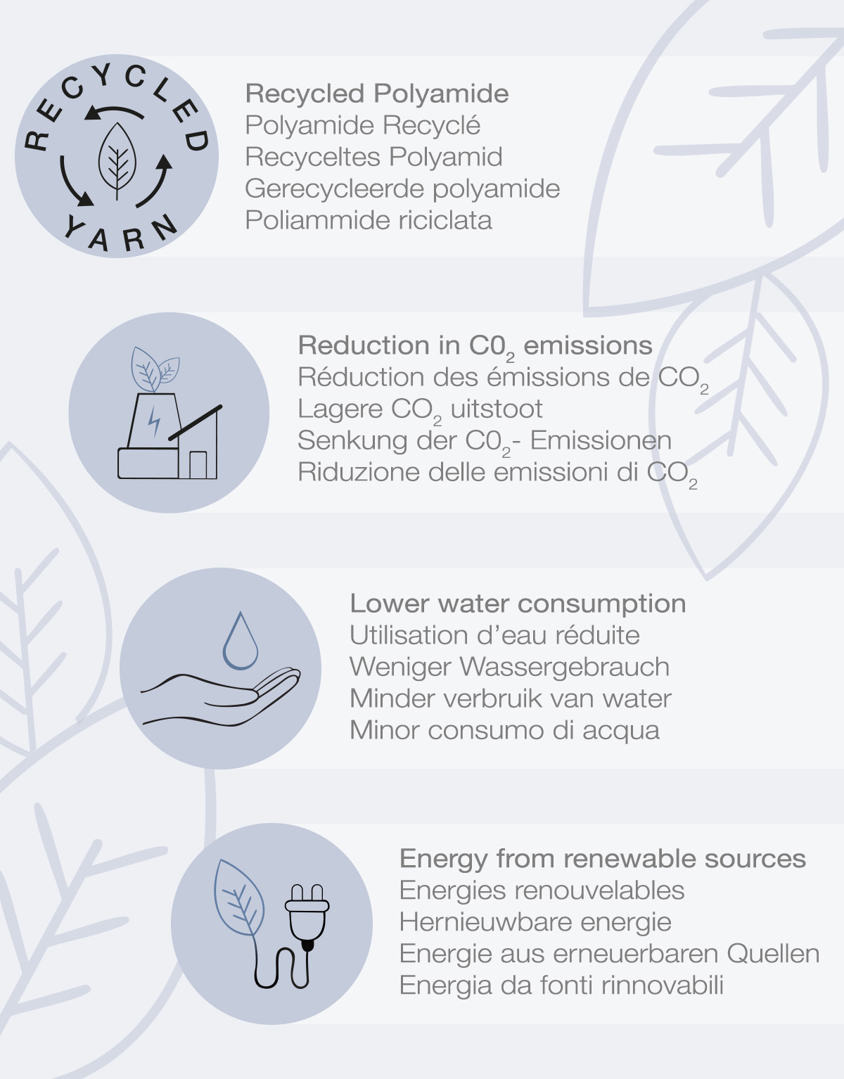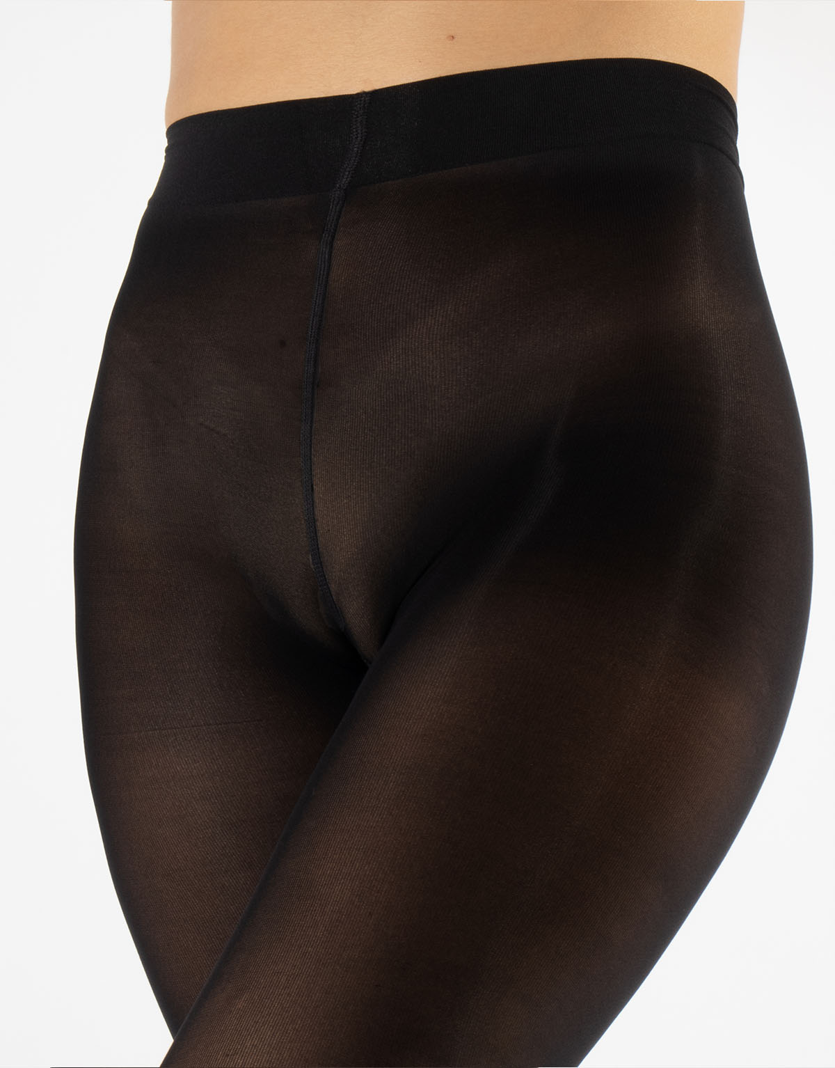Läbipaistmatud ökoloogilised sukkpüksid, made from recycled yarn. 3D technology for excellent fit, softness and resistance. All-through, with cotton gusset & lamedad õmblused