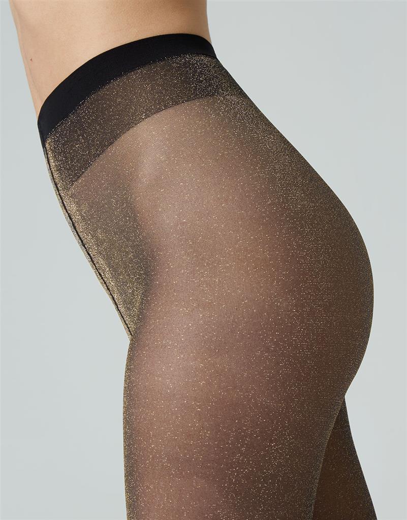 Elegantne Lurex-efektiga sukkpüksid, puuvillase sisetükiga, tugevdatud varbaosadega, lamedate õmblustega, 25 den.