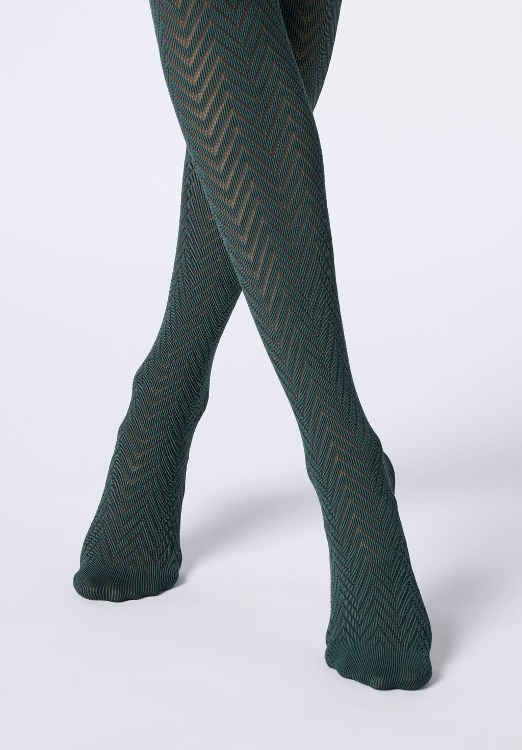 Semi-opaque tights with chevron pattern.