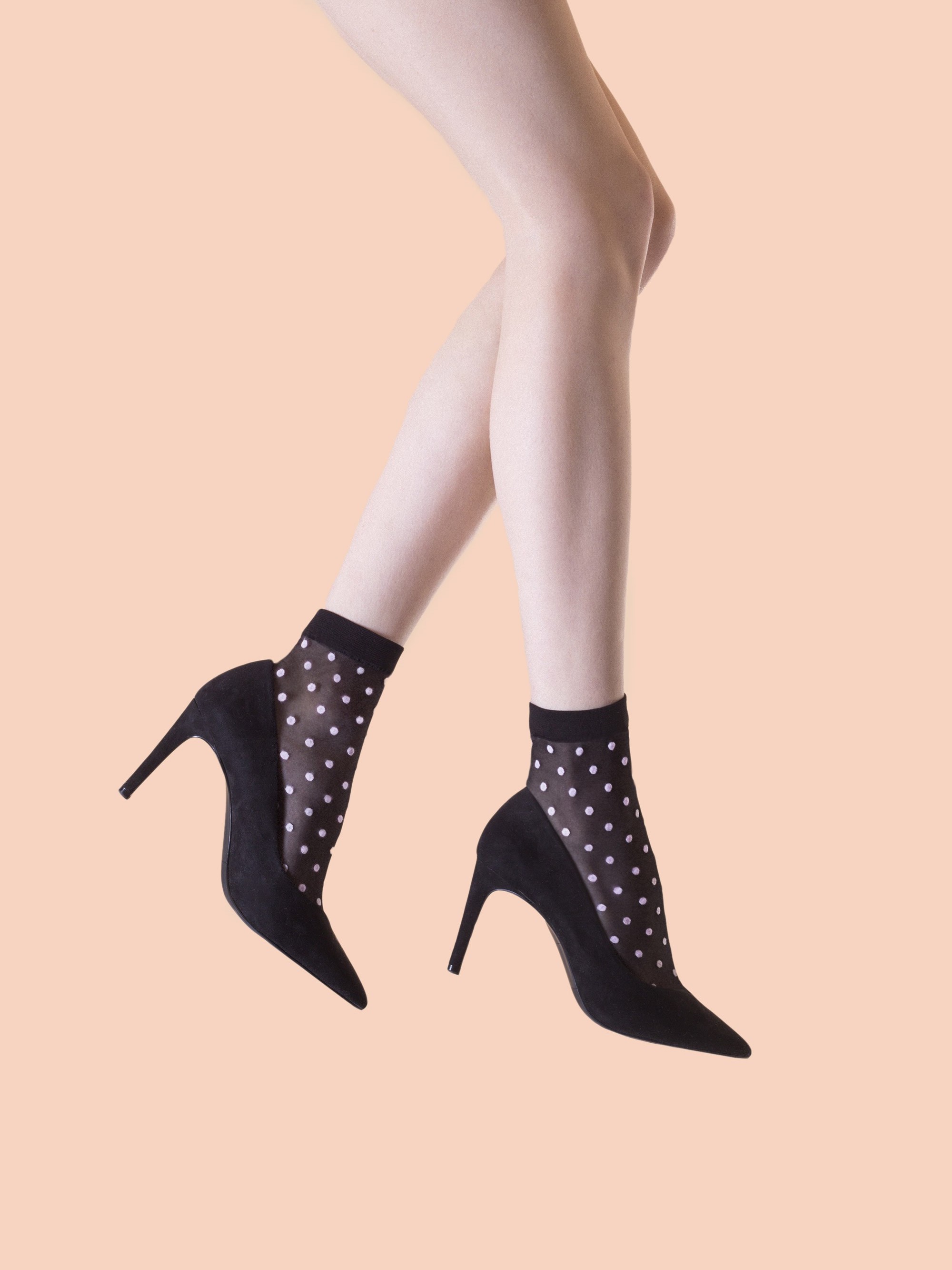 Mustriga, läbipaistvad sokid ilma survet avaldava riba ja tugevdatud varbaosaga. Toode on valmistatud 3D tehnoloogias, kõrgeima kvaliteediga kaetud lõngadest, et suurendada vastupidavust. Saadaval kahes värviversioonis: linane - pastellroosa lillemuster linase taustaga ja must - pastellroosa lillemuster musta taustaga. Mõlemad värviversioonid varbaosa ja ülaosa musta värviga. 20 den