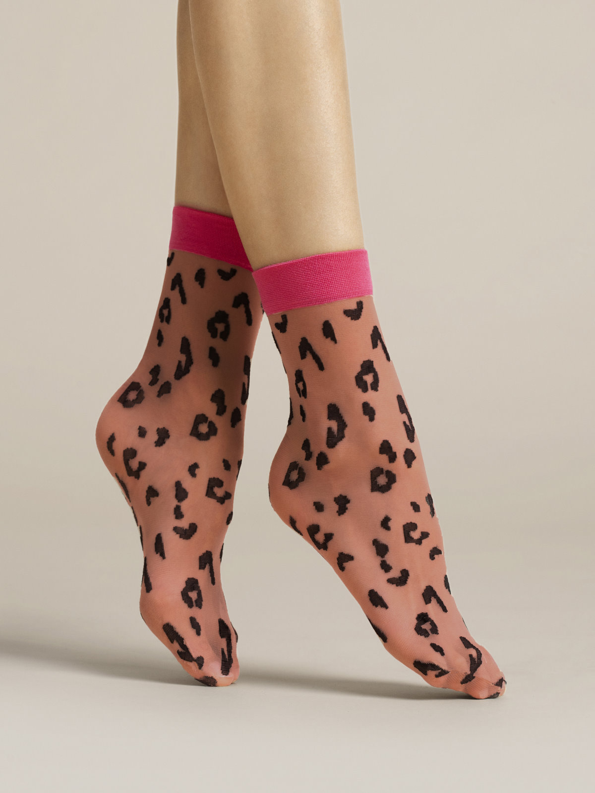 Toote teave "Fiore - 20 den sukkpüksid kontrastse loomamustriga madalad sokid"