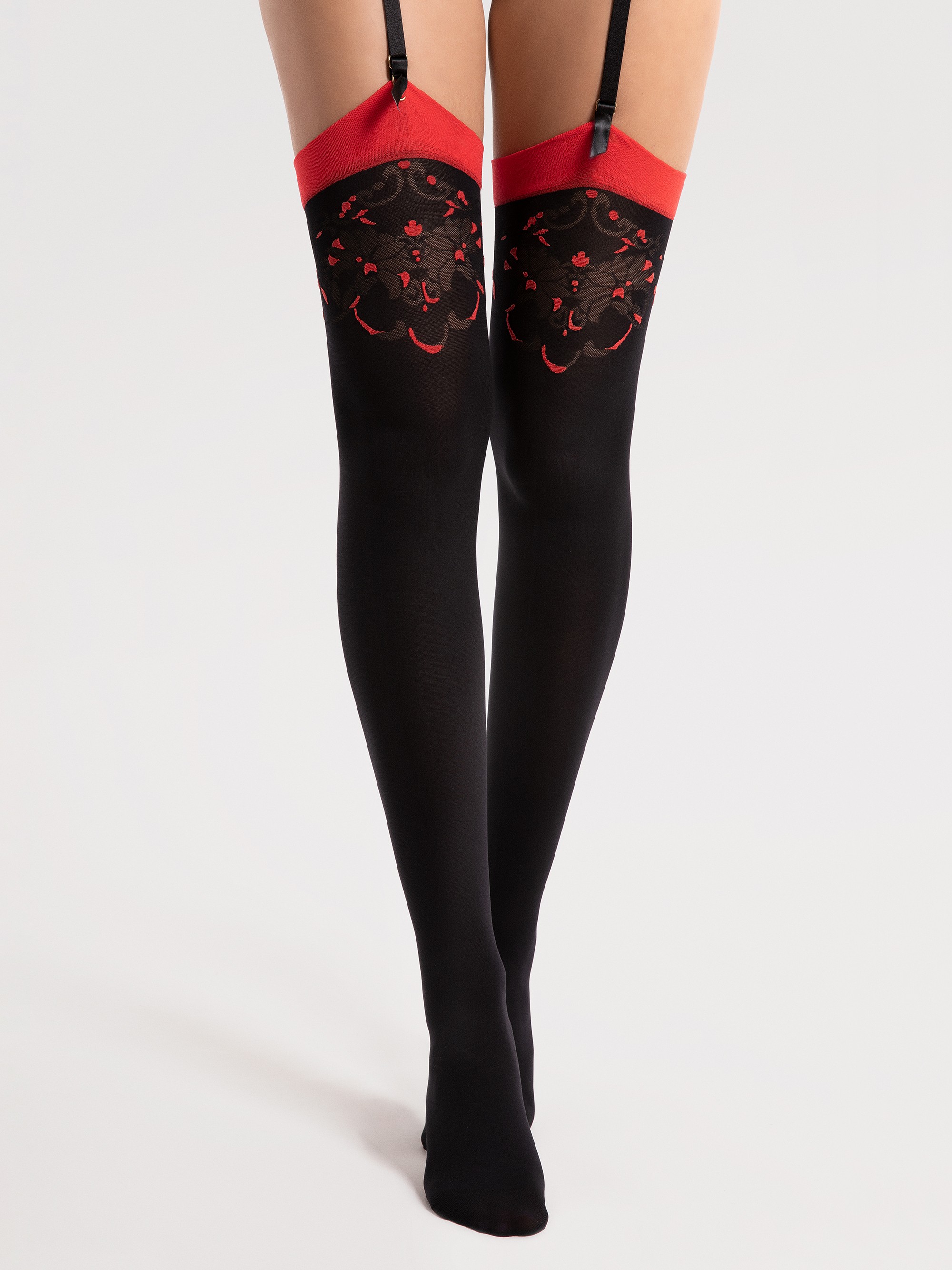 Fiore - Sensuaalsed sukad elegantse pitsimustriga ja kontrastse värviga ülaosas