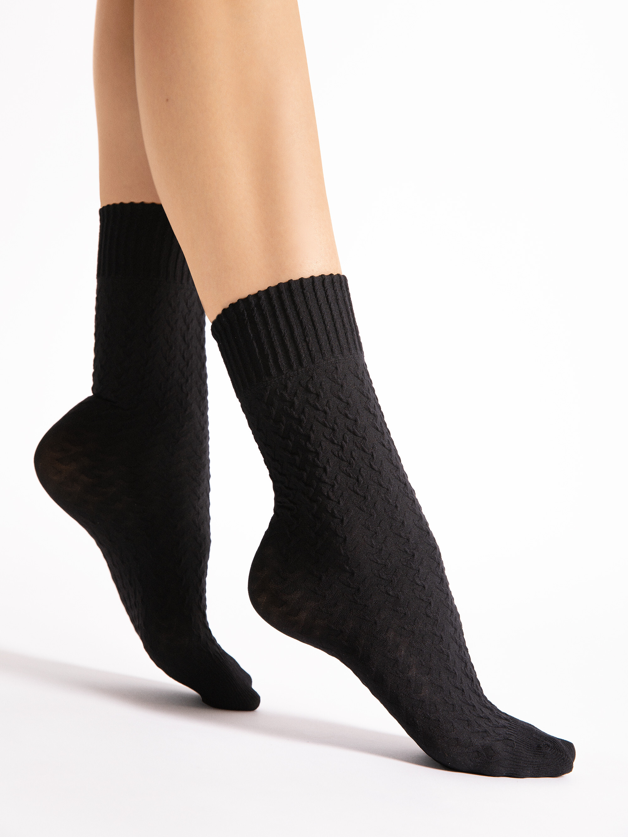 Fiore - 60 den sukkpüksid mustriga madalad sokid pitsiservaga kontrastvärviga
