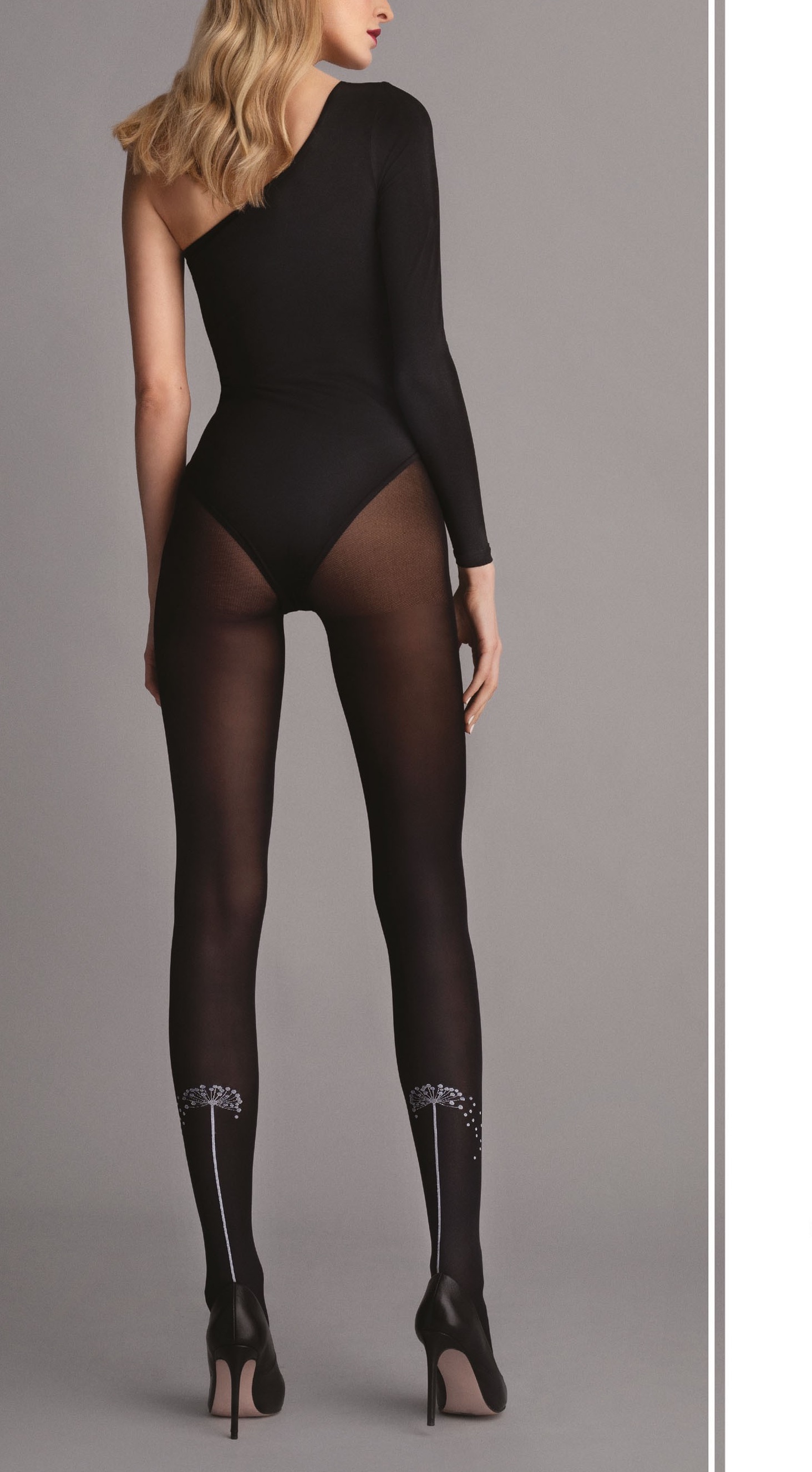 Fiore - Õhukesed sukkpüksid õmbluse imitatsiooniga tagatriibuga ja peene täpilise mustriga