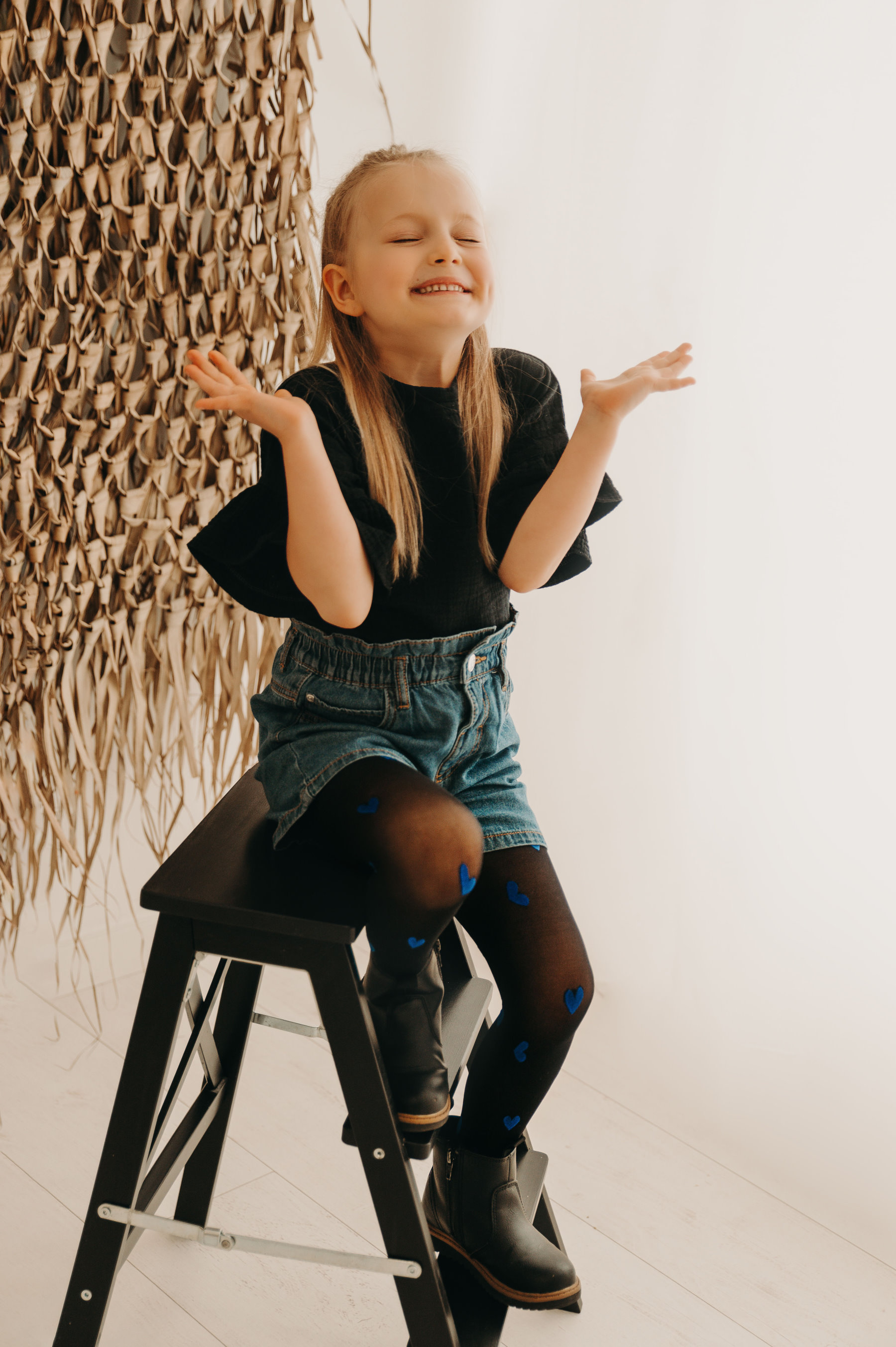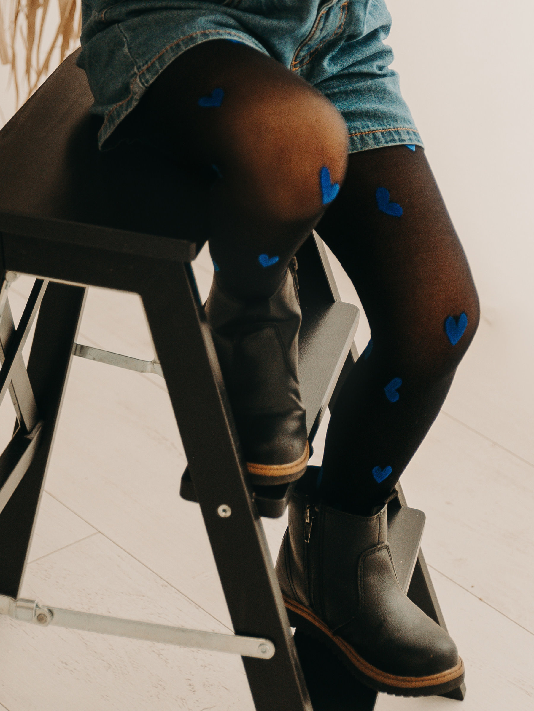 Laste sukkpüksid on valmistatud äärmise hoolikusega, on ideaalselt sobivad ja samal ajal paindlikud, pakkudes aktiivsetele lastele pikki tunde piiramatu liikumise võimalust. Südamete elav sinine toon kontrastib kaunilt sügava musta taustaga, luues lummava visuaalse efekti.