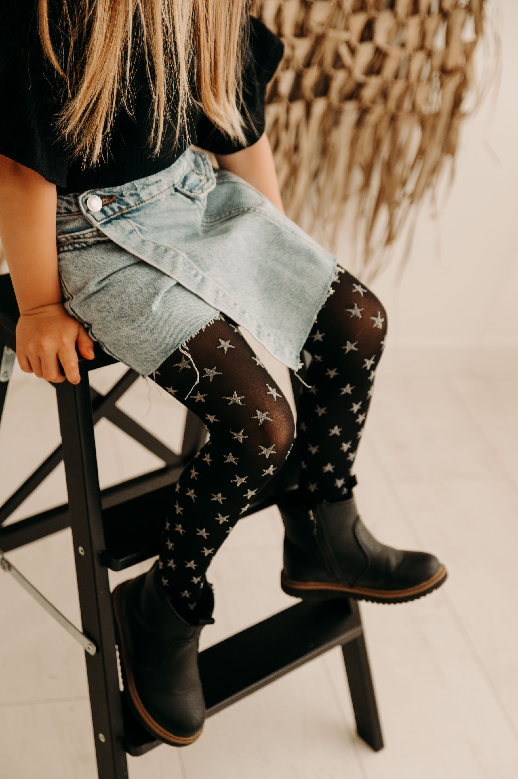 Need sukkpüksid on tõeline stiili konstellatsioon igale noorele moefanaatikale. Erksad tähtede muster mustal taustal sädeleb nagu kauged galaktikad pimedal ööl, lisades igale tüdruku välimusele taevase elegantsi ja graatsia.
