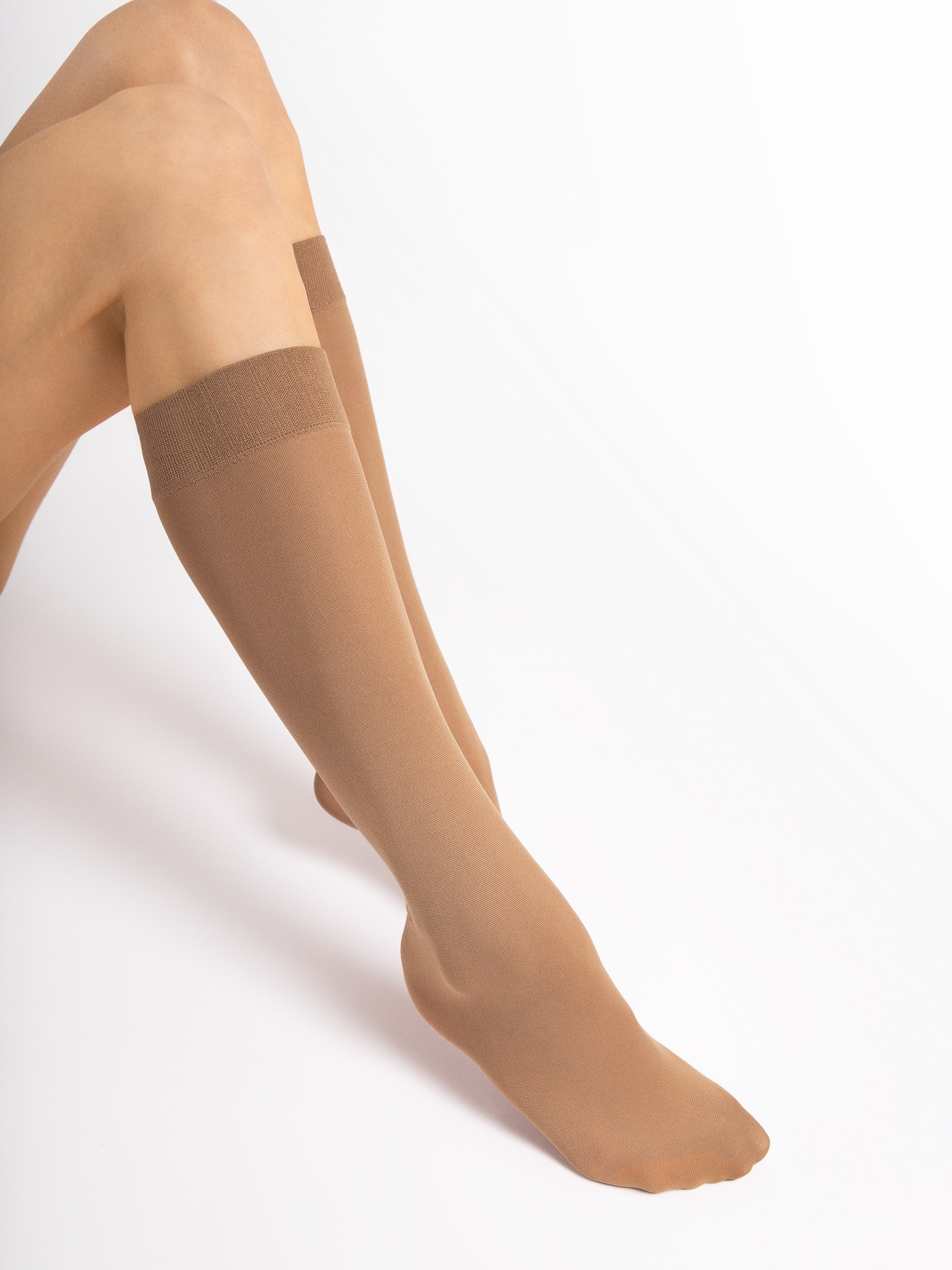 Kõrge kvaliteediga, läbipaistmatud mikrokiud põlvikud mugava ilma elastse vöökohata ja nähtamatult tugevdatud varbaosaga. Saadaval erinevates värvides.