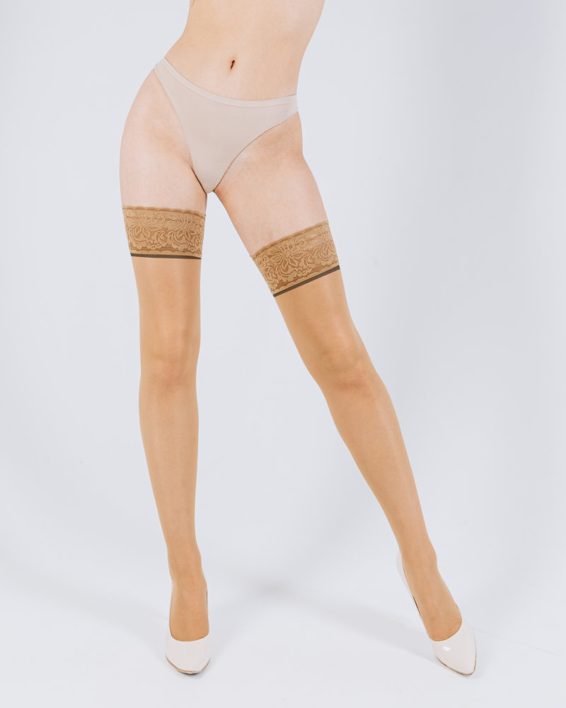 Annes Exclusive Calze 20 denier õhukesed õmblusega isidiveeruvad sukad lillemustriga pitsiserv
