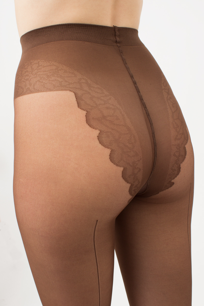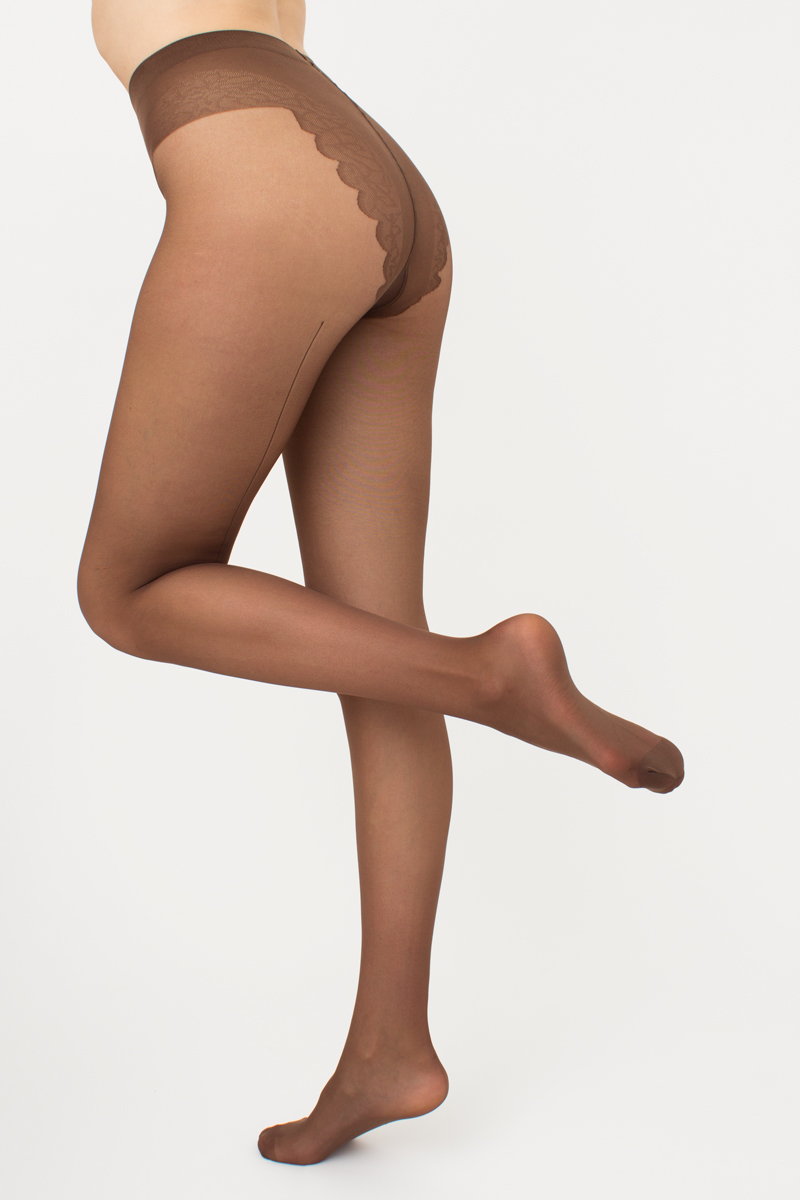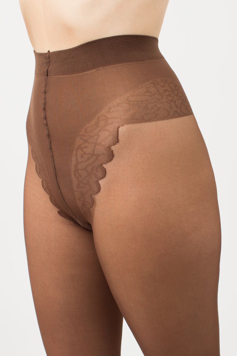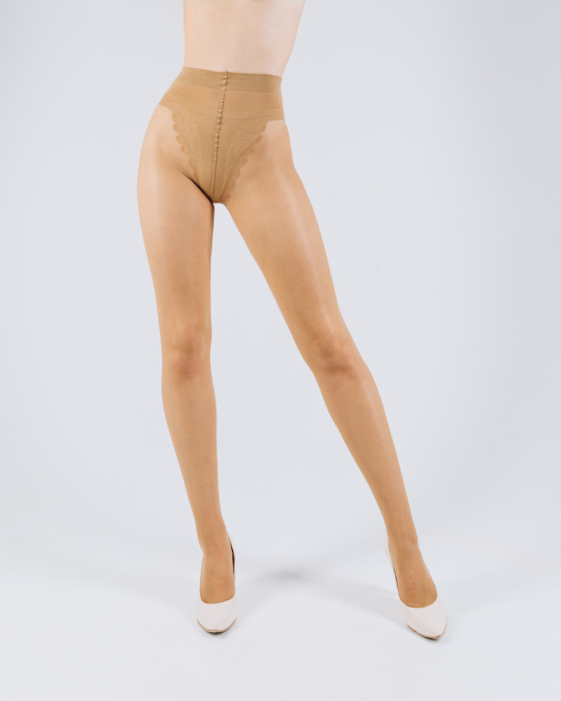 Õmblusega sukkpüksid elegantse, kõrge jalalõikega pitsiservaga püksiosa, lahtise varbaosaga, lamedate õmblustega ja puuvillase sisetükiga, 20 den.
