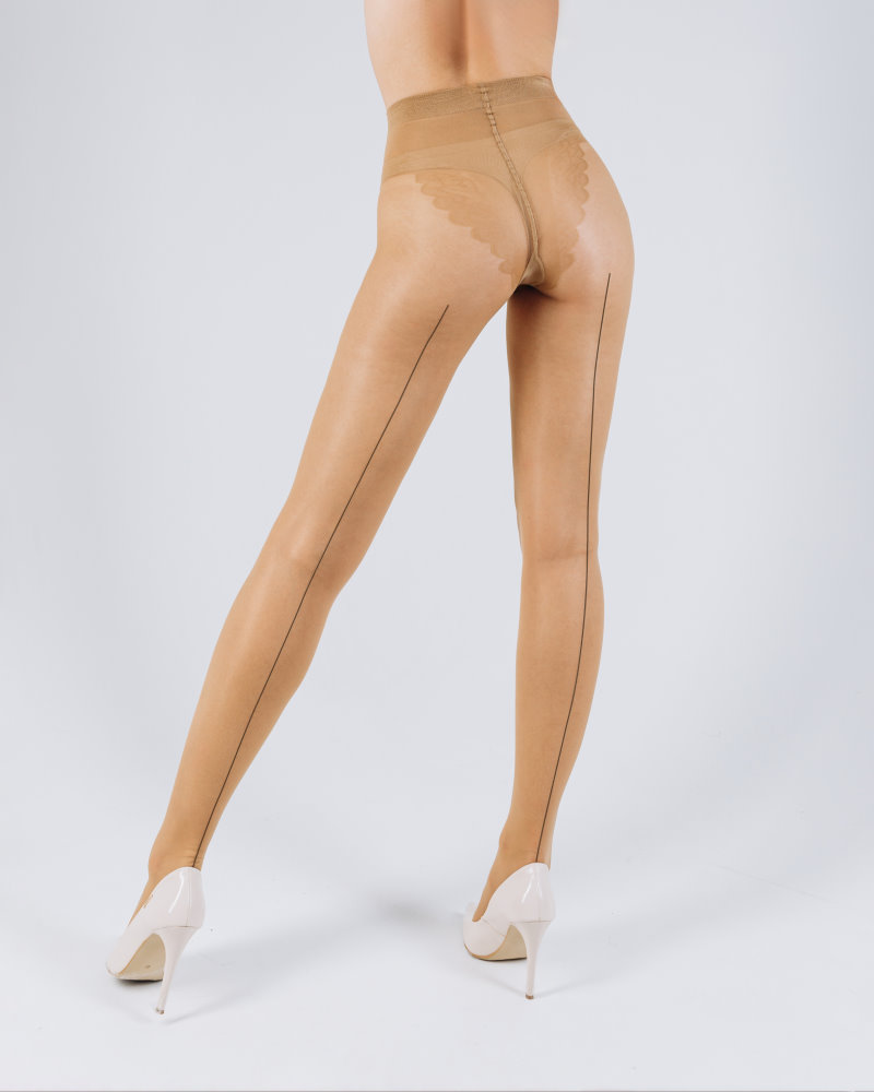 Õmblusega sukkpüksid elegantse, kõrge jalalõikega pitsiservaga püksiosa, lahtise varbaosaga,...rohkem