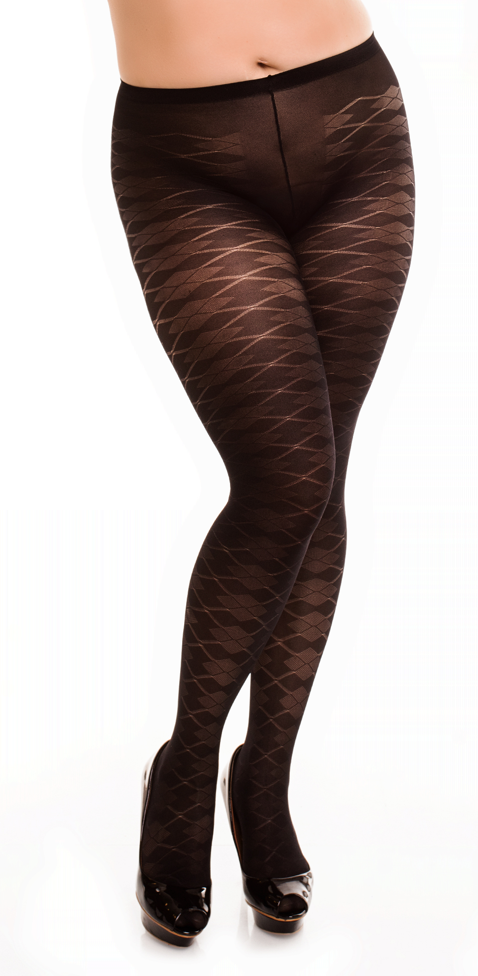 Glamory - Läbipaistmatud pluss-suuruses sukad koos keeruka teemantimustriga