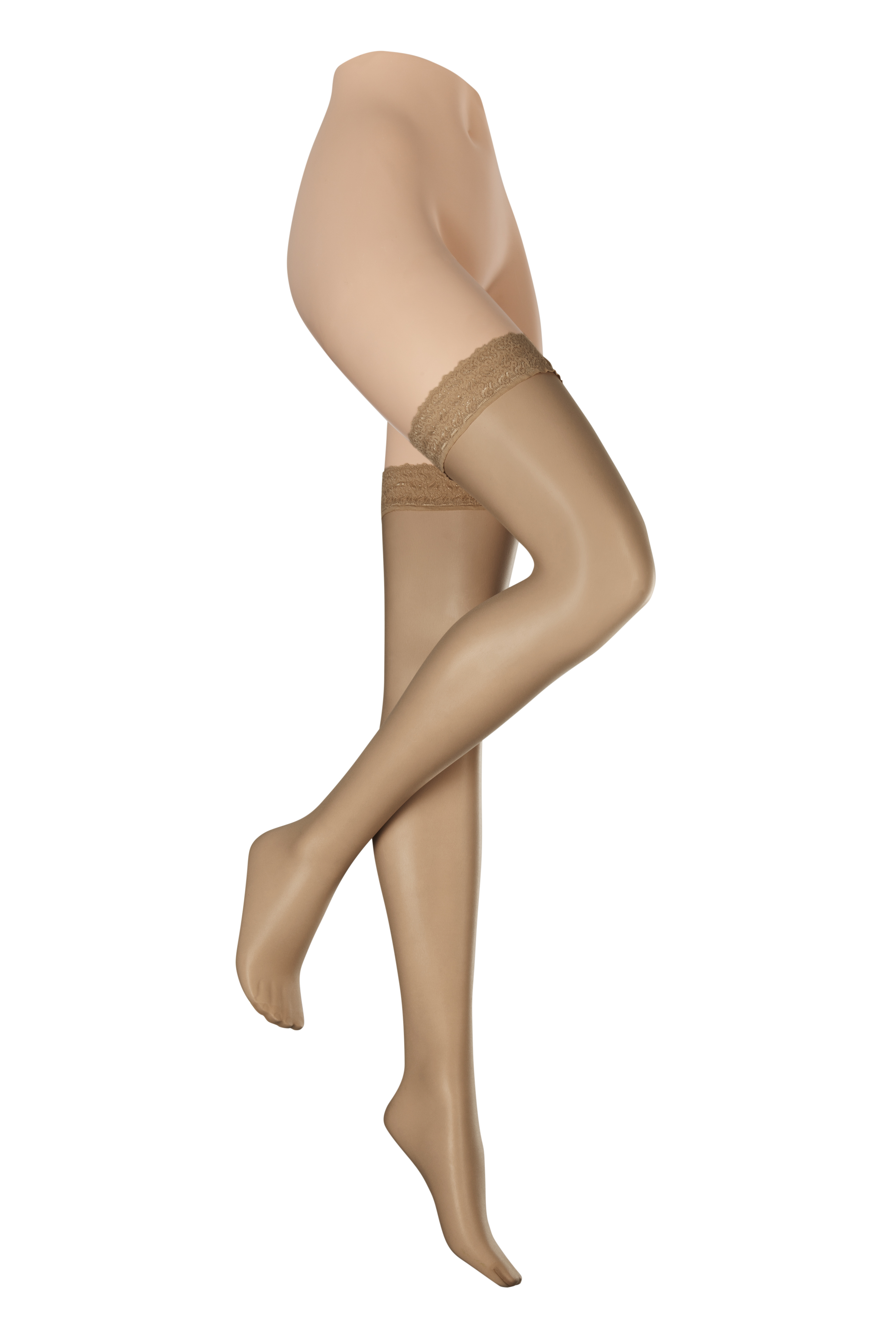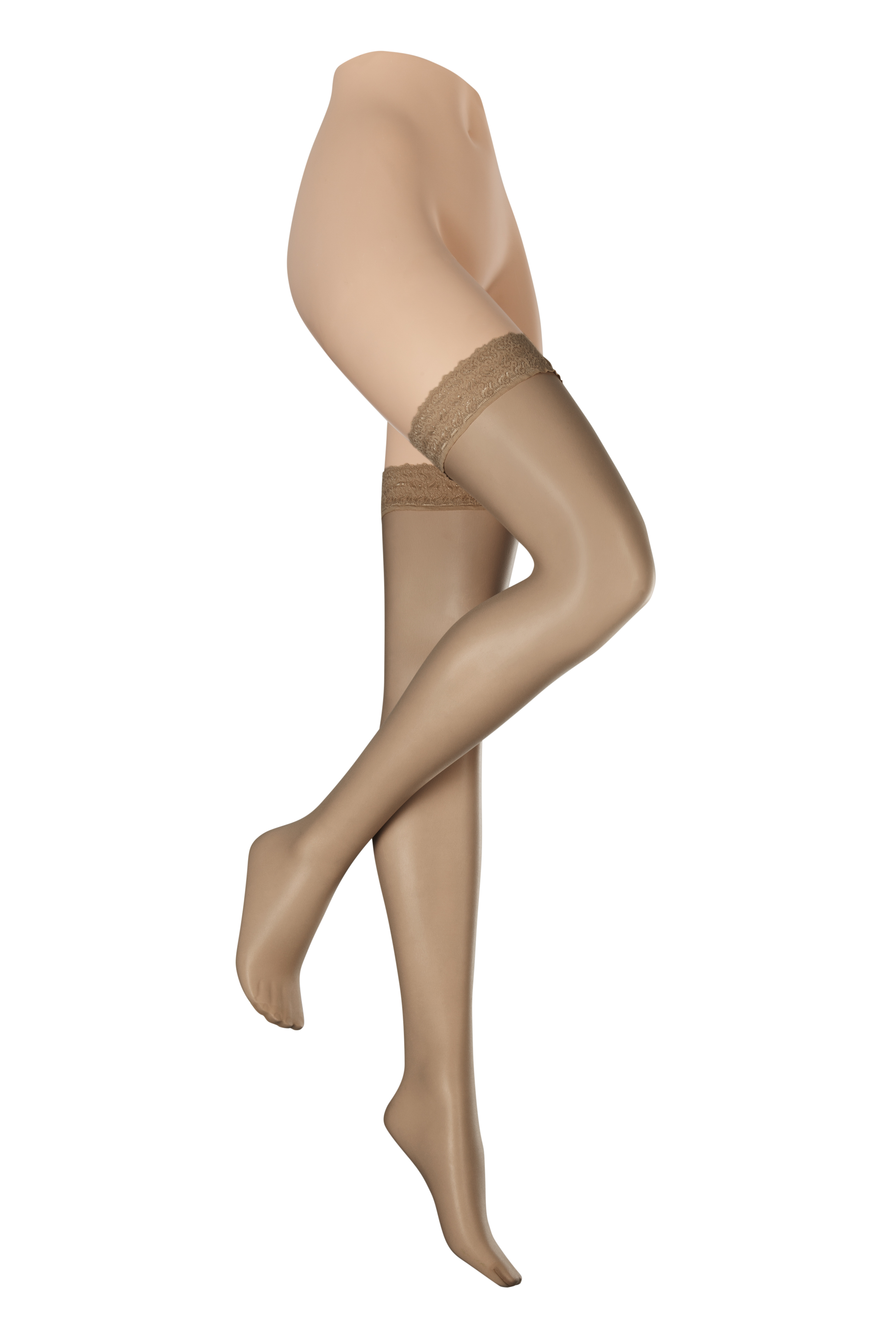 Õhukesed matt suve hoiduvad sukad - Täiuslik nudes välimus teie jalgadele. Moodne pitsibänd kahekordsete silikooniribadega, sandaalivarvas. 14 denier
