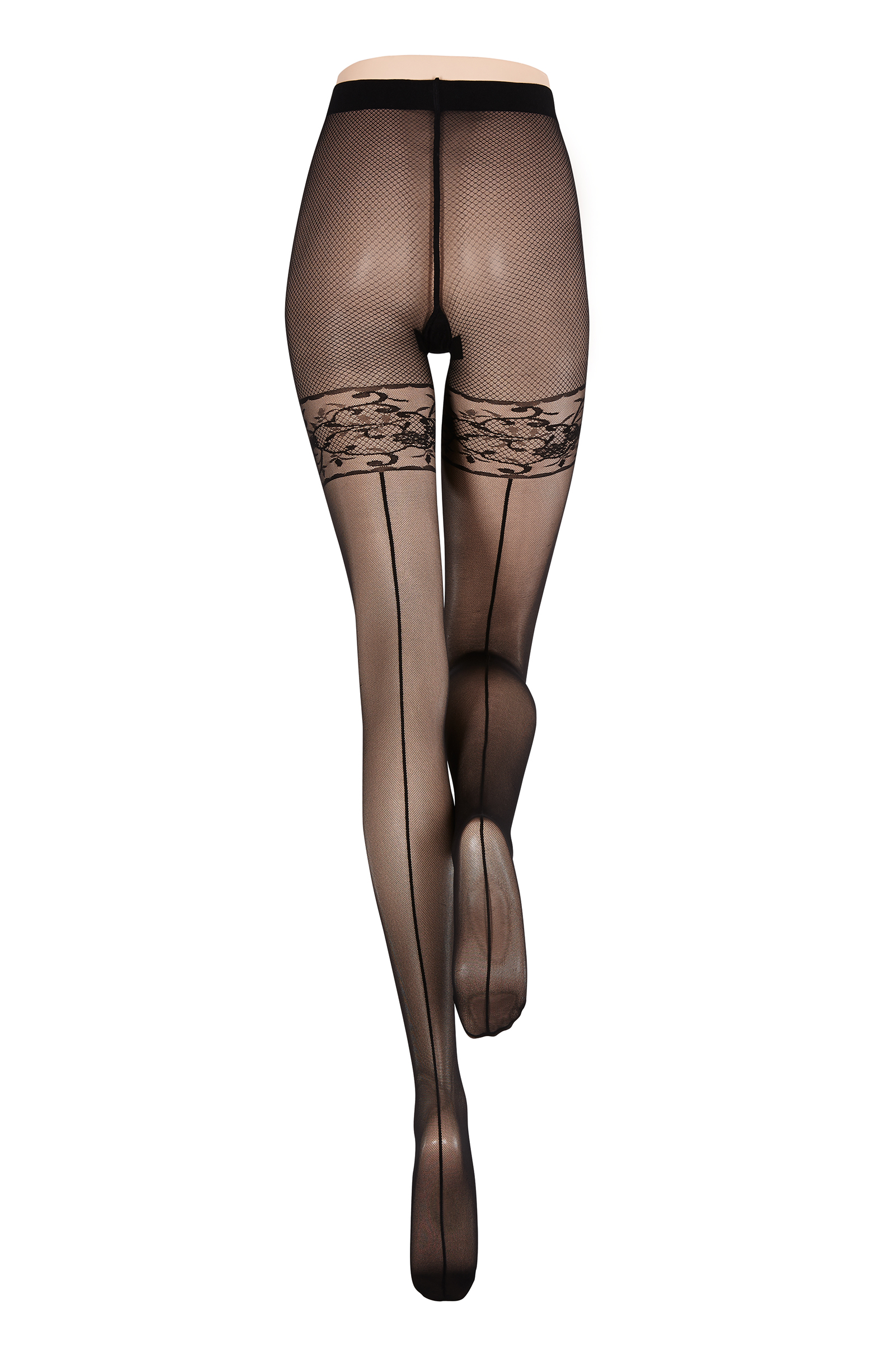 Läbipaistvad, matt sukkpüksid sedutseva hoiduvate sukade efektiga tagatriibuga. Filet muster jalgadel. Diskreetne tugevdatud varbaosa. Lamedad õmblused ja puuvillane sisetükk.