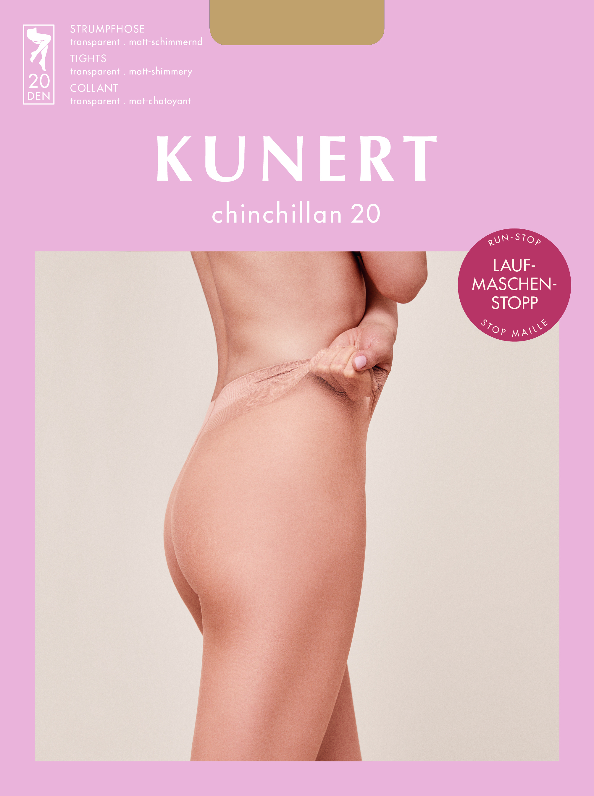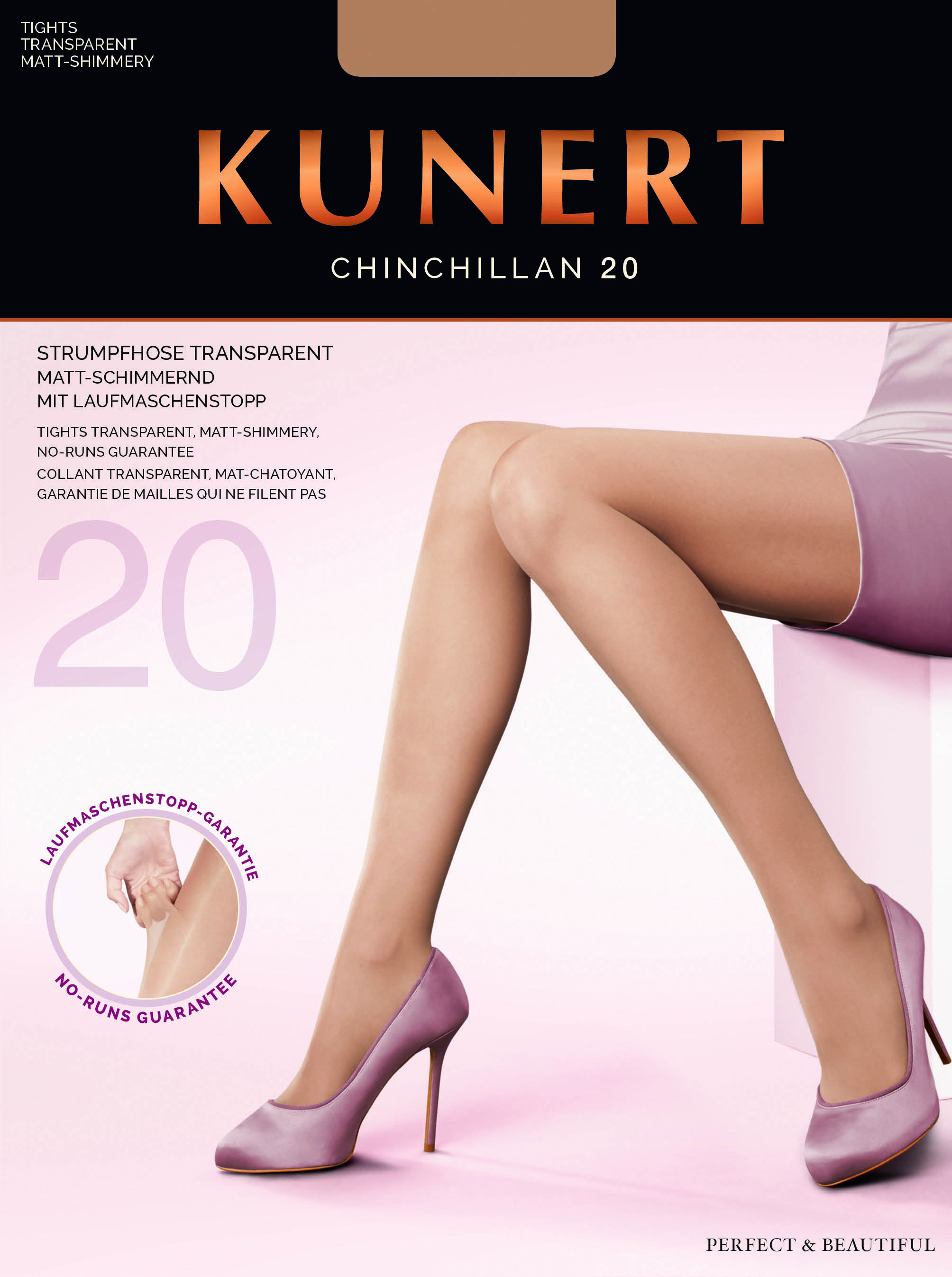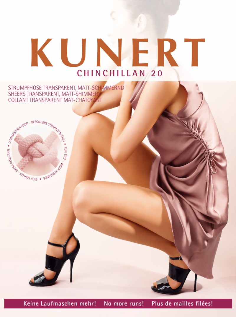 Õhukesed, läbipaistmatud, matt-sädelev Uus materjalide kombinatsioon takistab jooksu. KUNERT CHINCHILLAN on erakordselt vastupidav ja pakub siidiselt pehmet tunnet koos kindlusega, et jooksu ei tule.