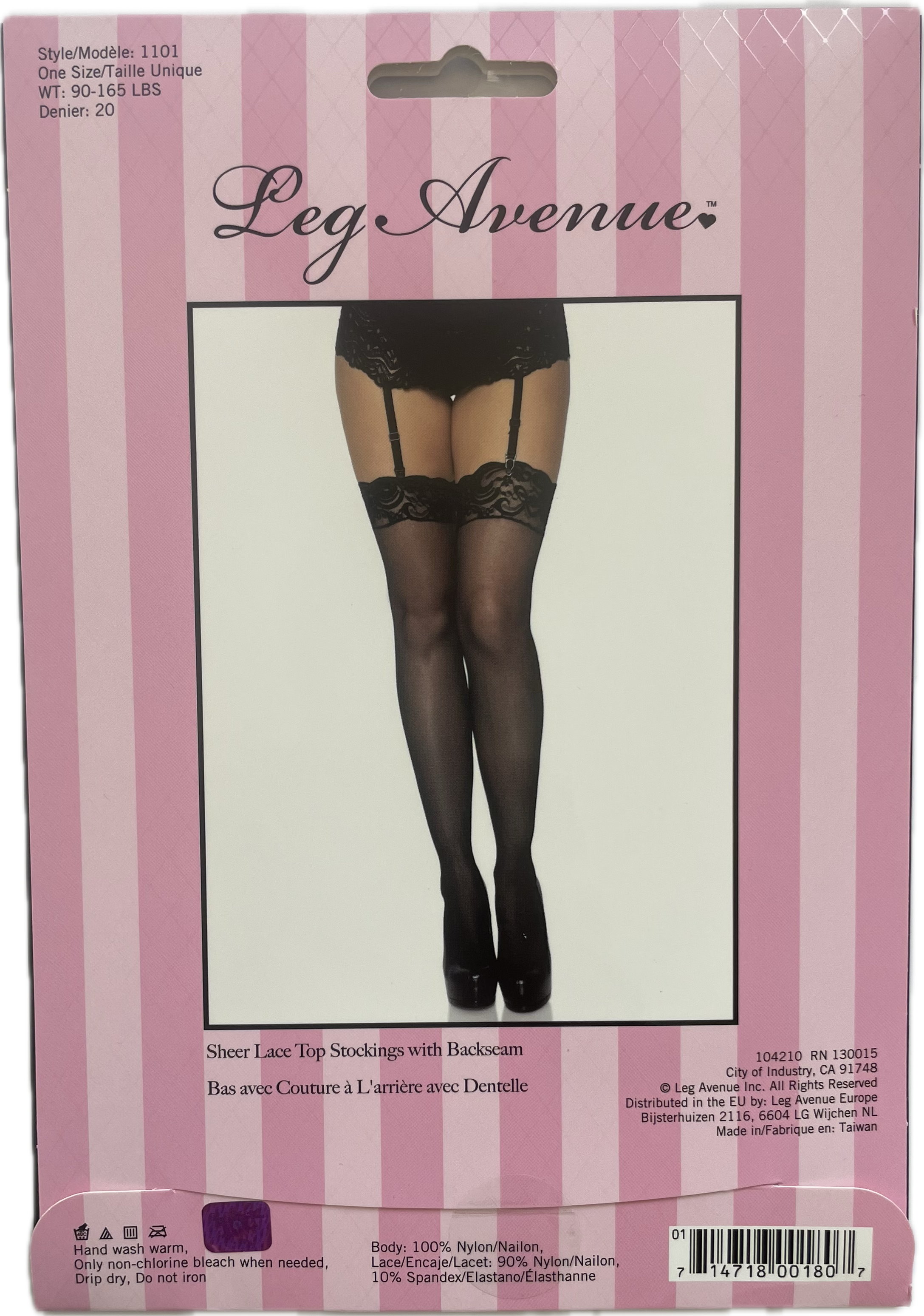 Toote teave "Leg Avenue - Õhukesed pitsiservaga sukad õmblusega 20 DEN"