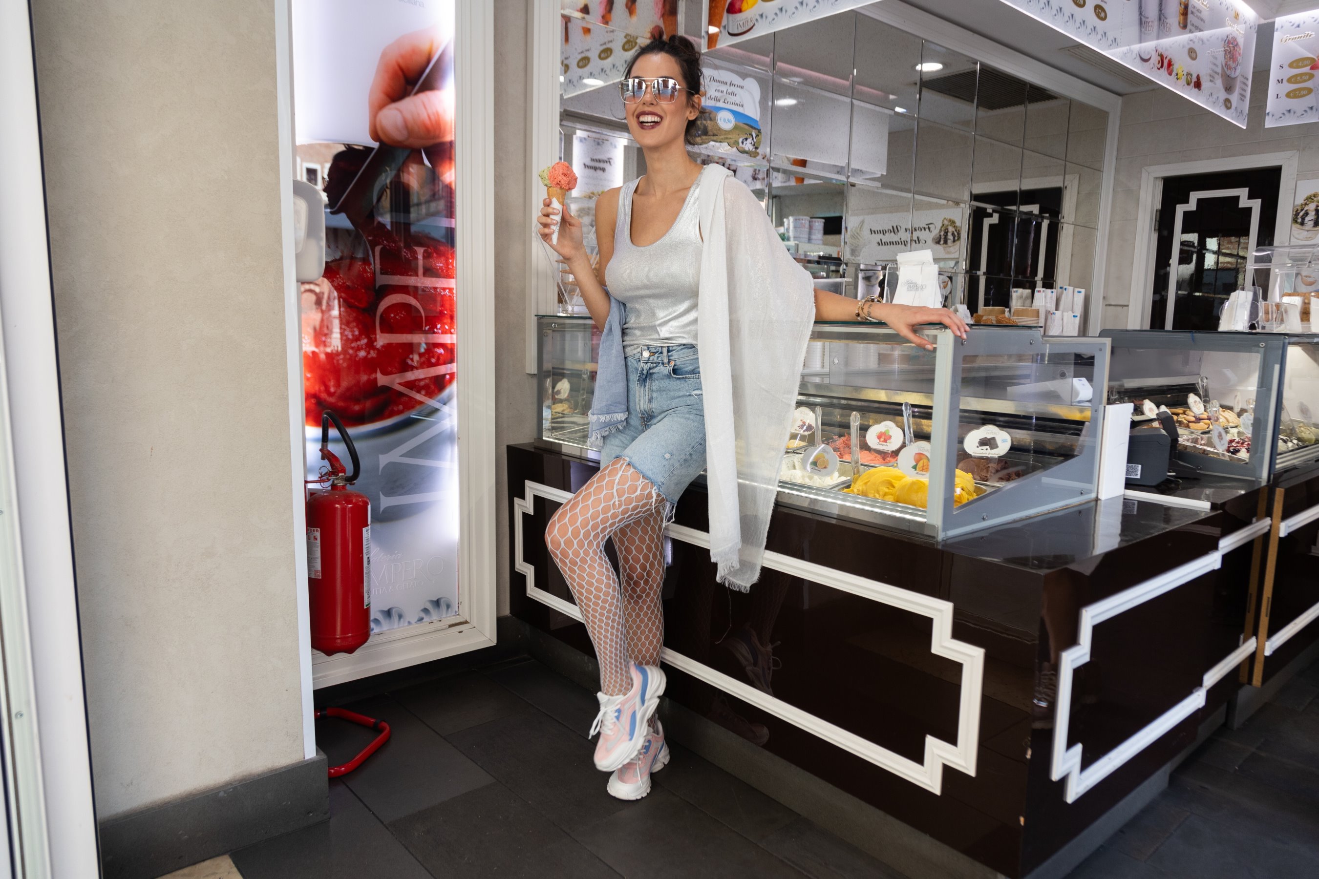 Fishnet tights with wide oval pattern, perfect for the hot season.