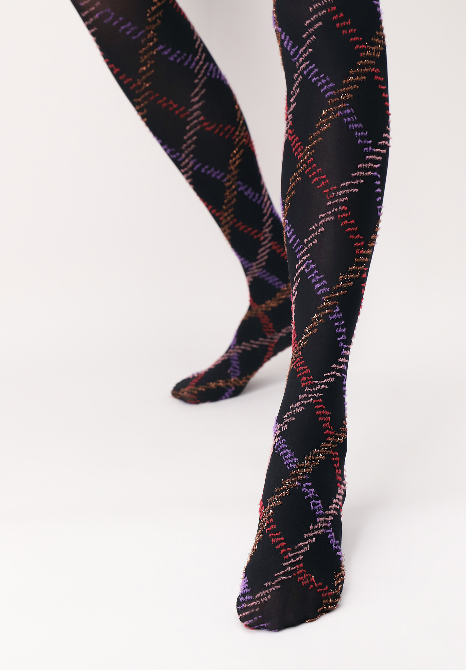 Oroblu - sukkpüksid isereviva efektiga Vichy ruudulise mustriga ja lurex triipudega