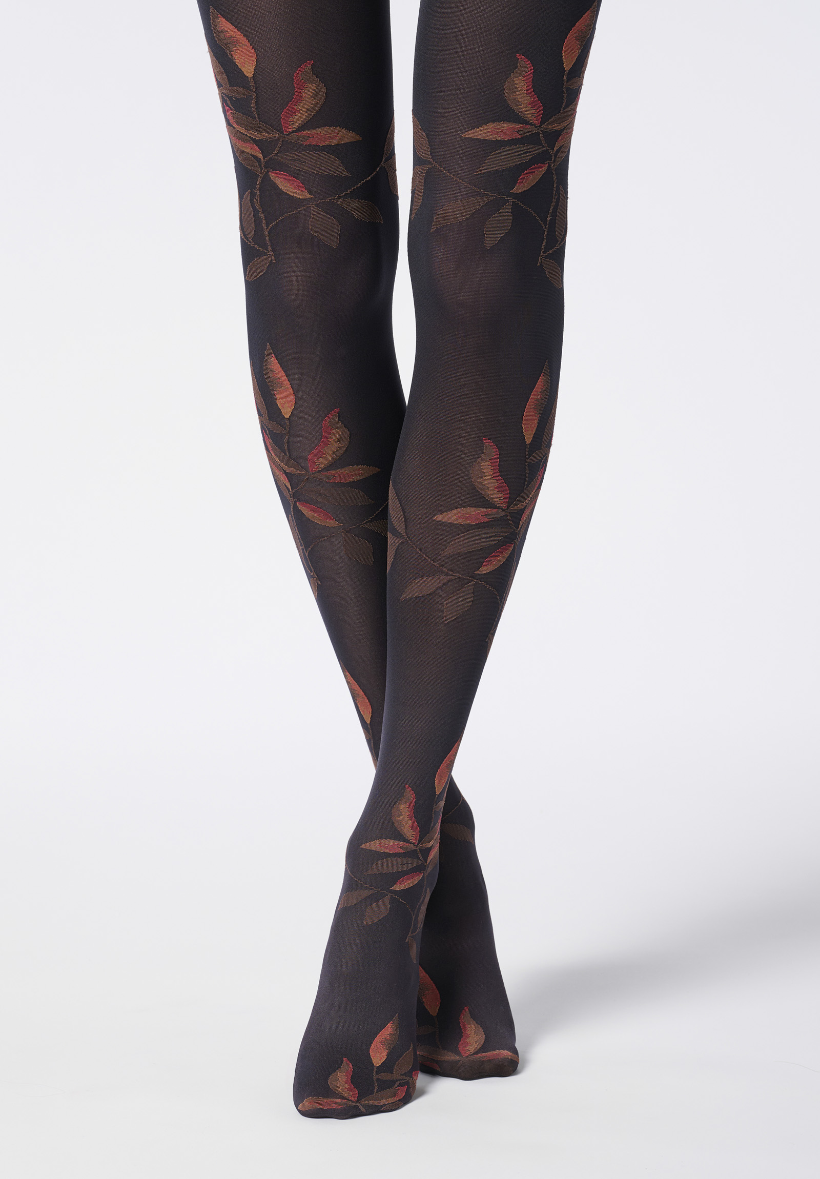 Oroblu - Läbipaistmatud sukkpüksid kauni kahetoonilise lillemustriga sügise värvides