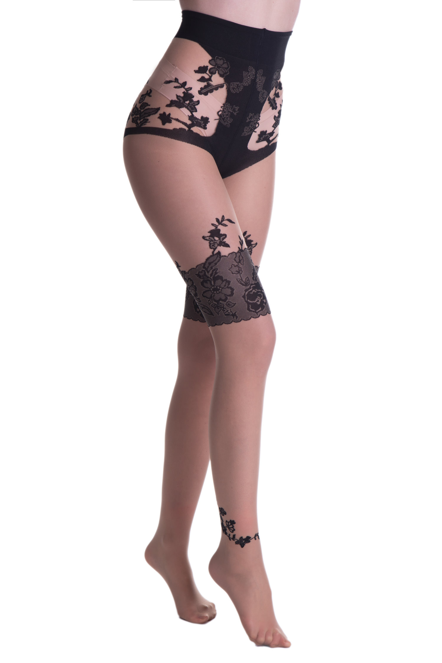 Fiore - Stiilsed sukkpüksid sukapaelavöö efektiga lillemustriga Etel 40 DEN