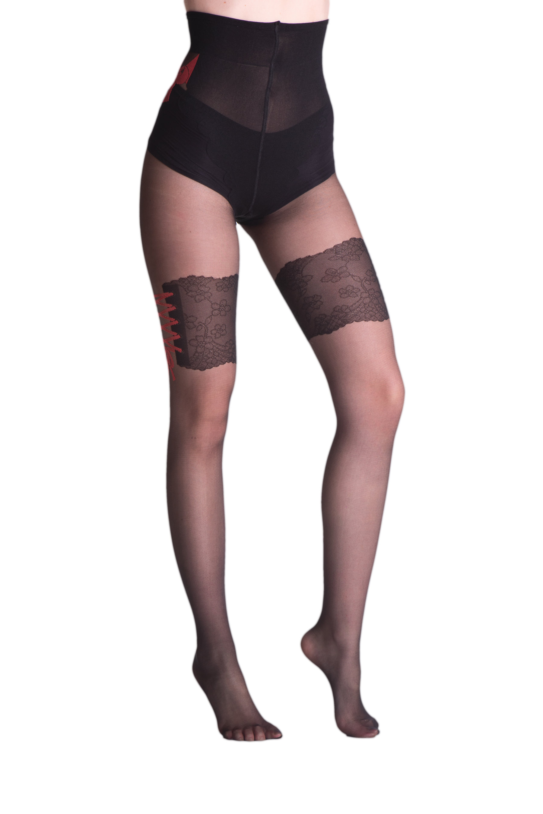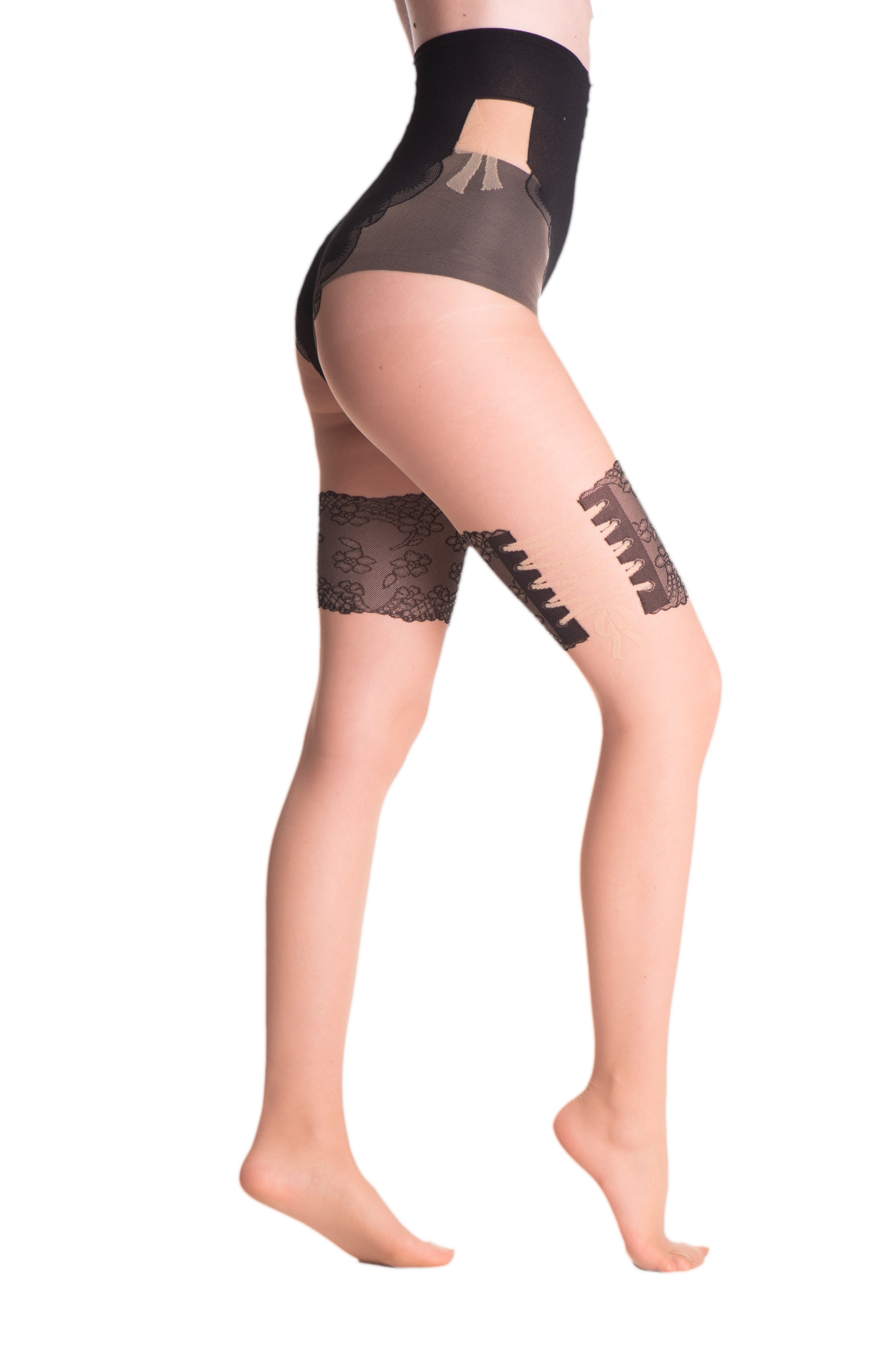 Sensuaalsed sukkpüksid sukapaelavöö efektiga. Disainitud volang ja bodice, nagu oleks need valmistatud peenest pitsist, muudavad selle ka seksikaks esemeks diskreetsel viisil.