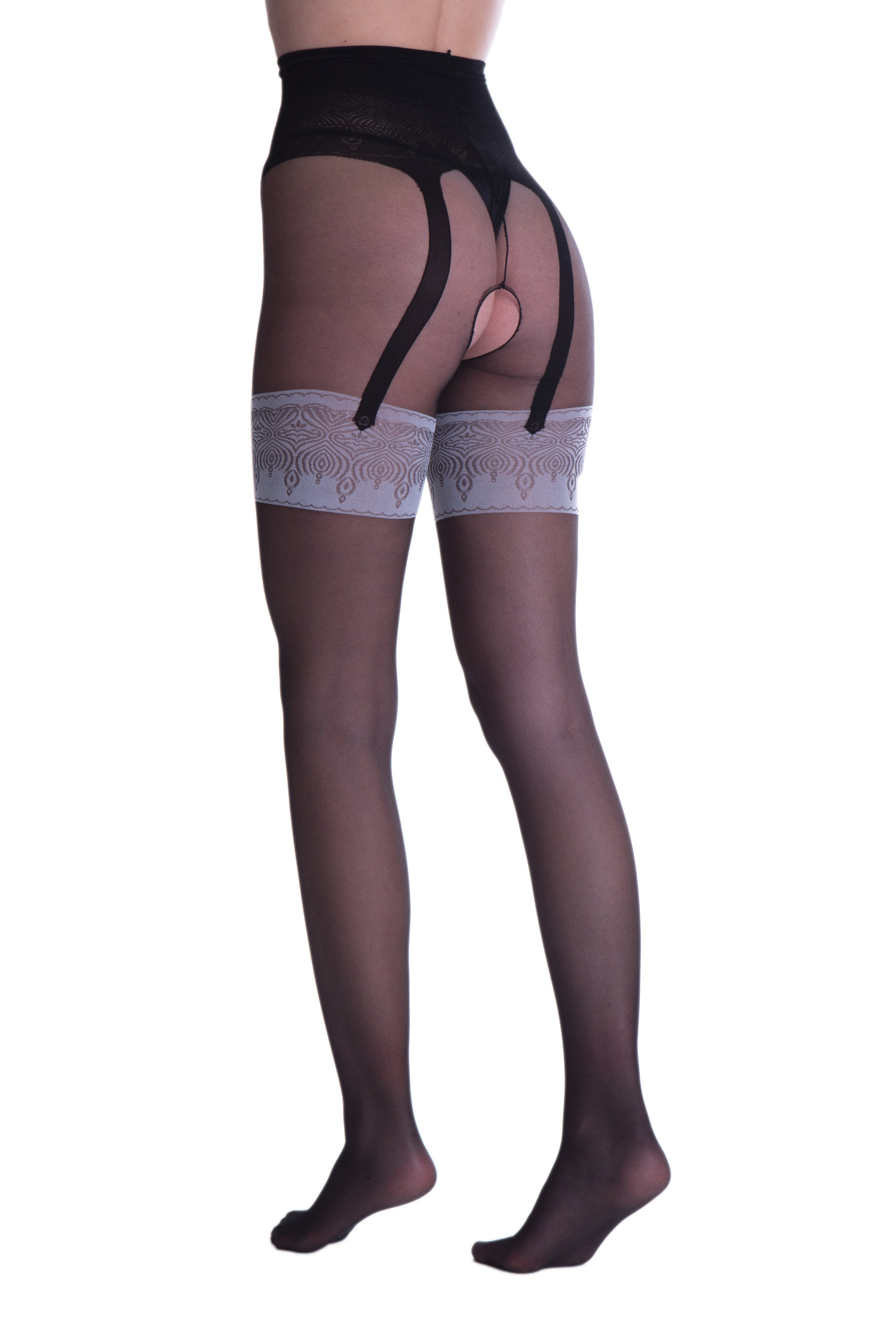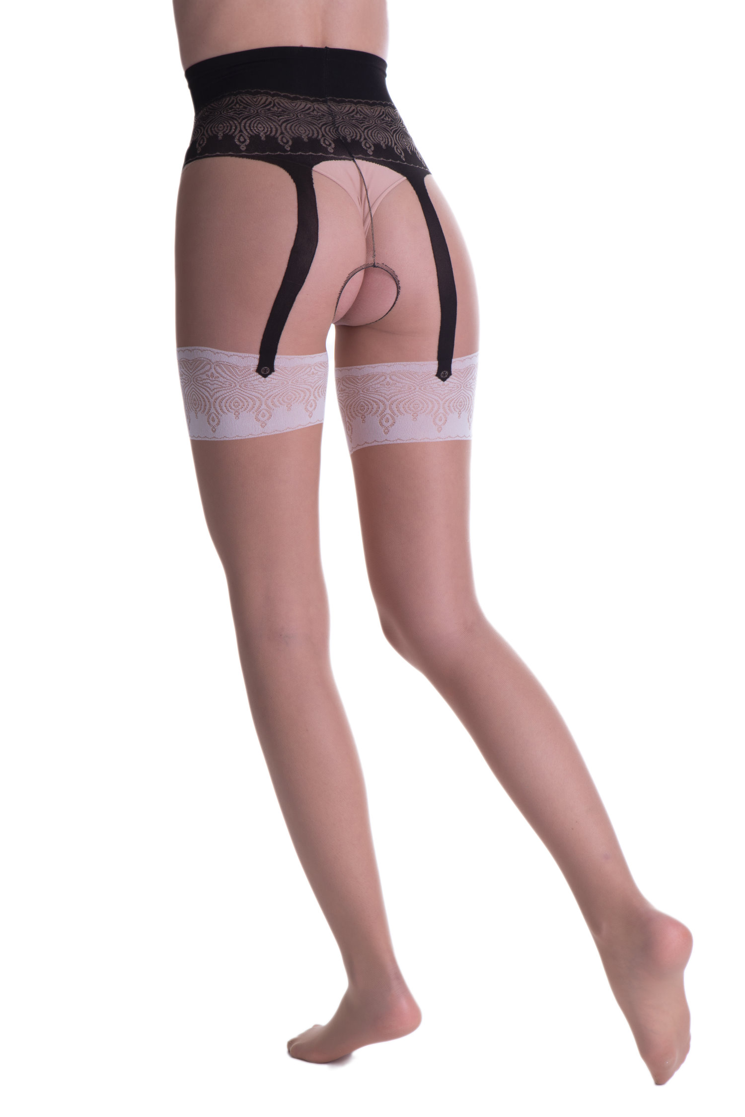 Fiore - Sensuaalsed sukkpüksid sukapaelavöö efektiga avatud jalgevahega