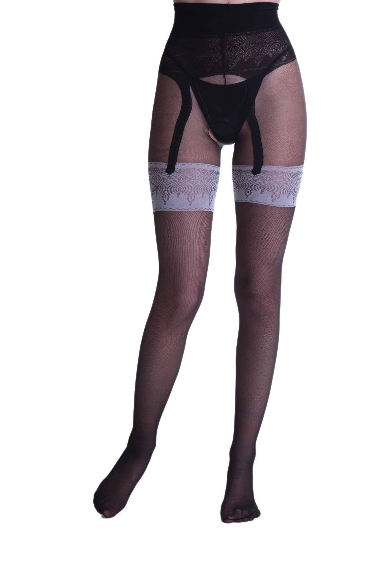 Gabriella Amira - Õhukesed avatud jalgevahega sukkpüksid pitsvööga
