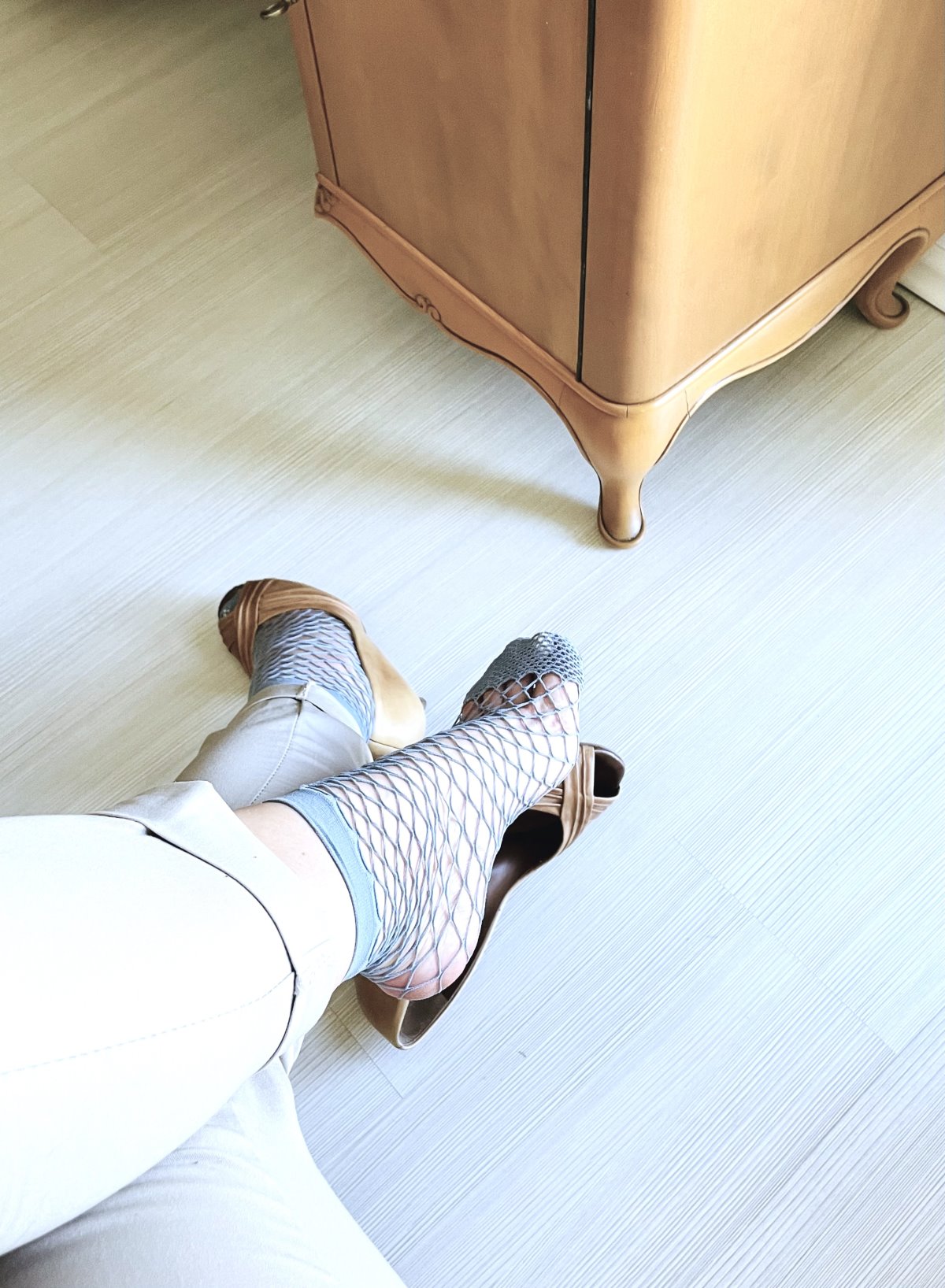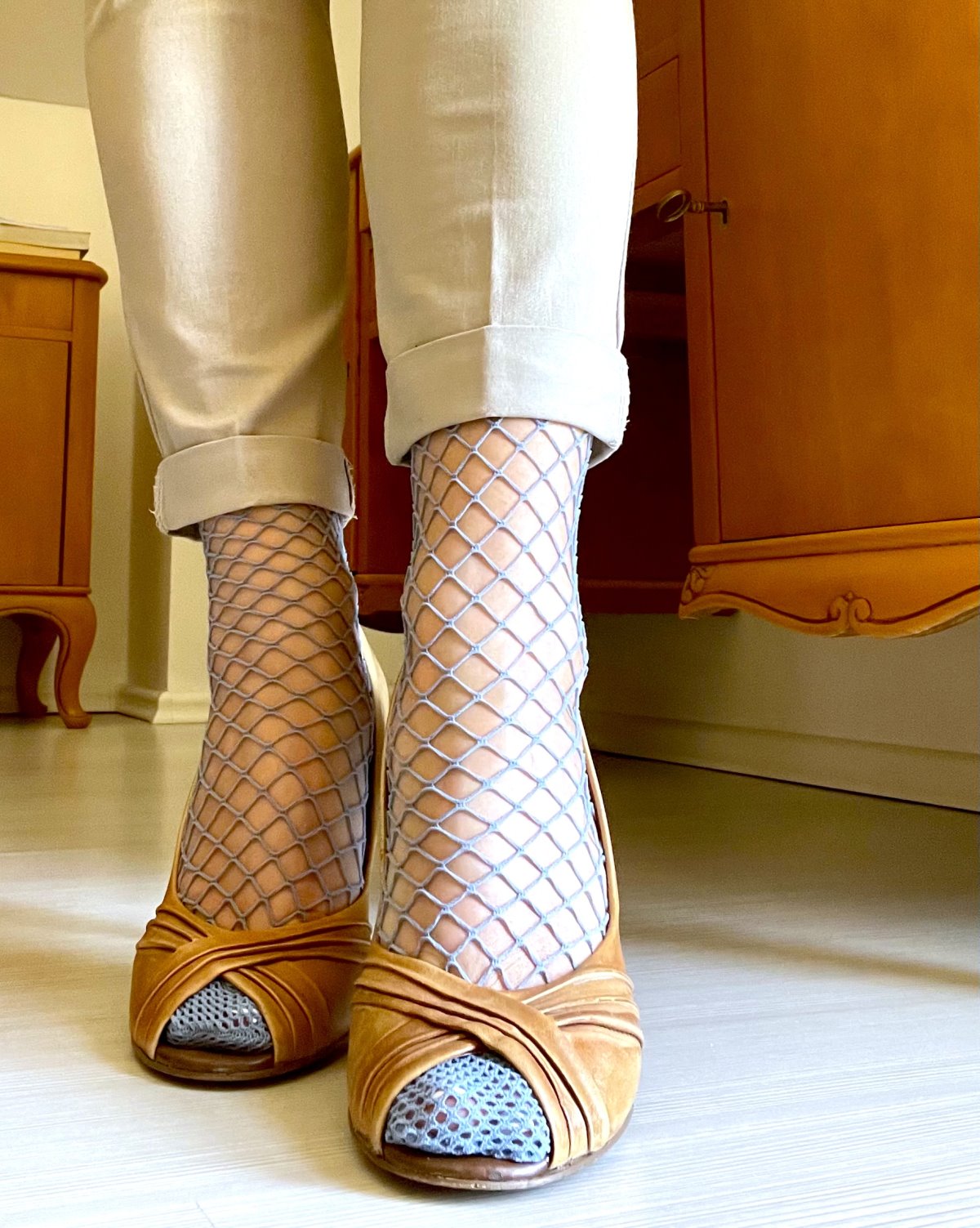 Võrksokkide põlvikud suurte silmadega. Mugava ilma elastse vöökohata ja peene tugevdatud varbaosaga optimaalsete kandmismugavuste jaoks.